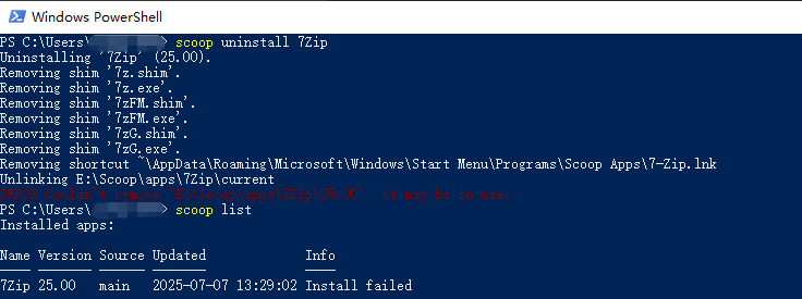 scoop update 7Zip运行效果如下: