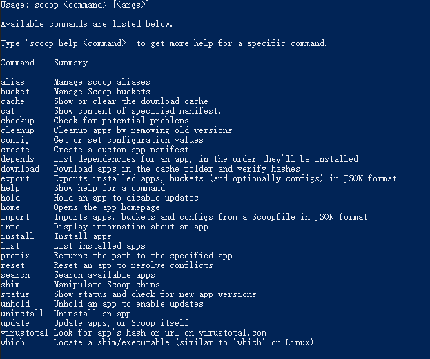 scoop help运行效果如下:
