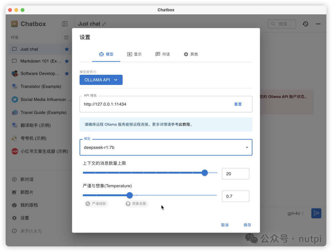 下载安装好 Chatbox 后,打开软件进行关键配置: