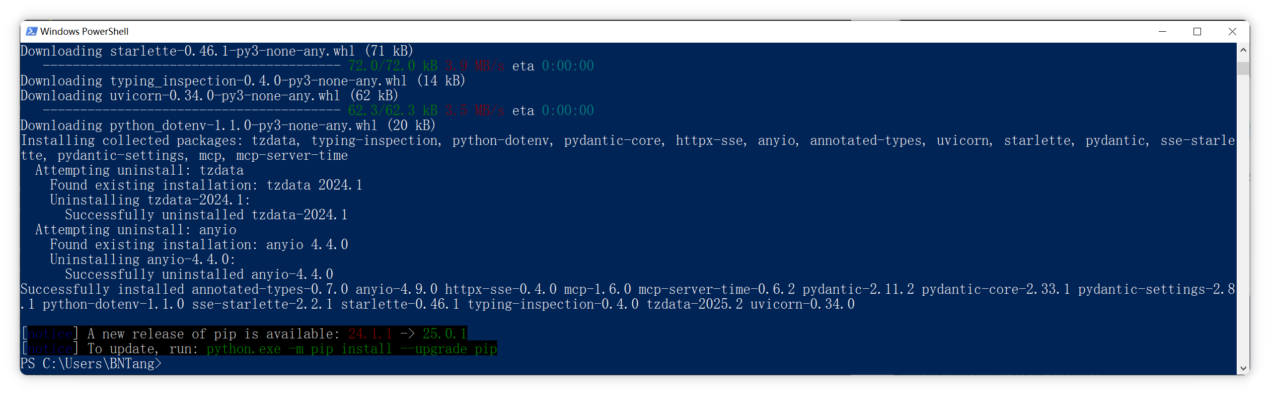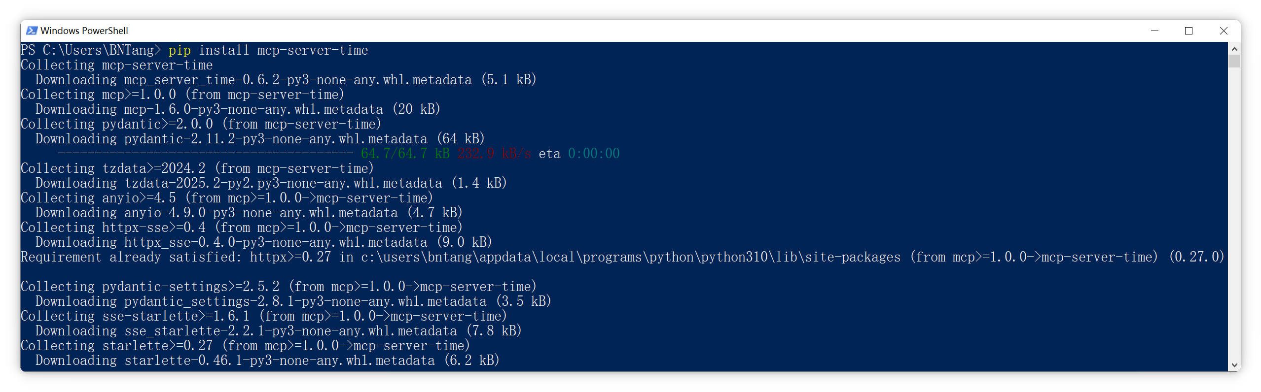 pip install mcp-server-time打开 Powershell 粘贴并执行:
