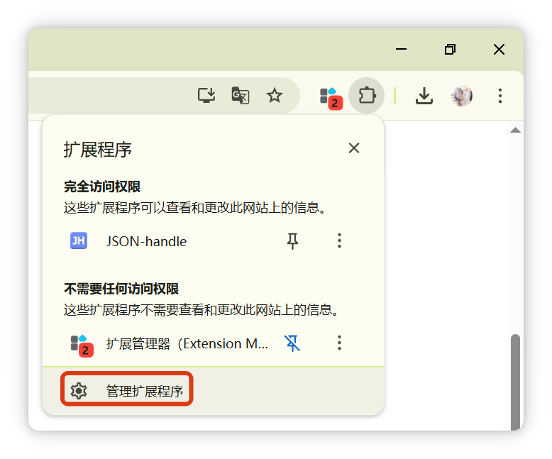 我使用的是谷歌浏览器,这一步的主要目的是在浏览器中安装这个插件。下载完成后,进入浏览器的扩展程序管理页面: