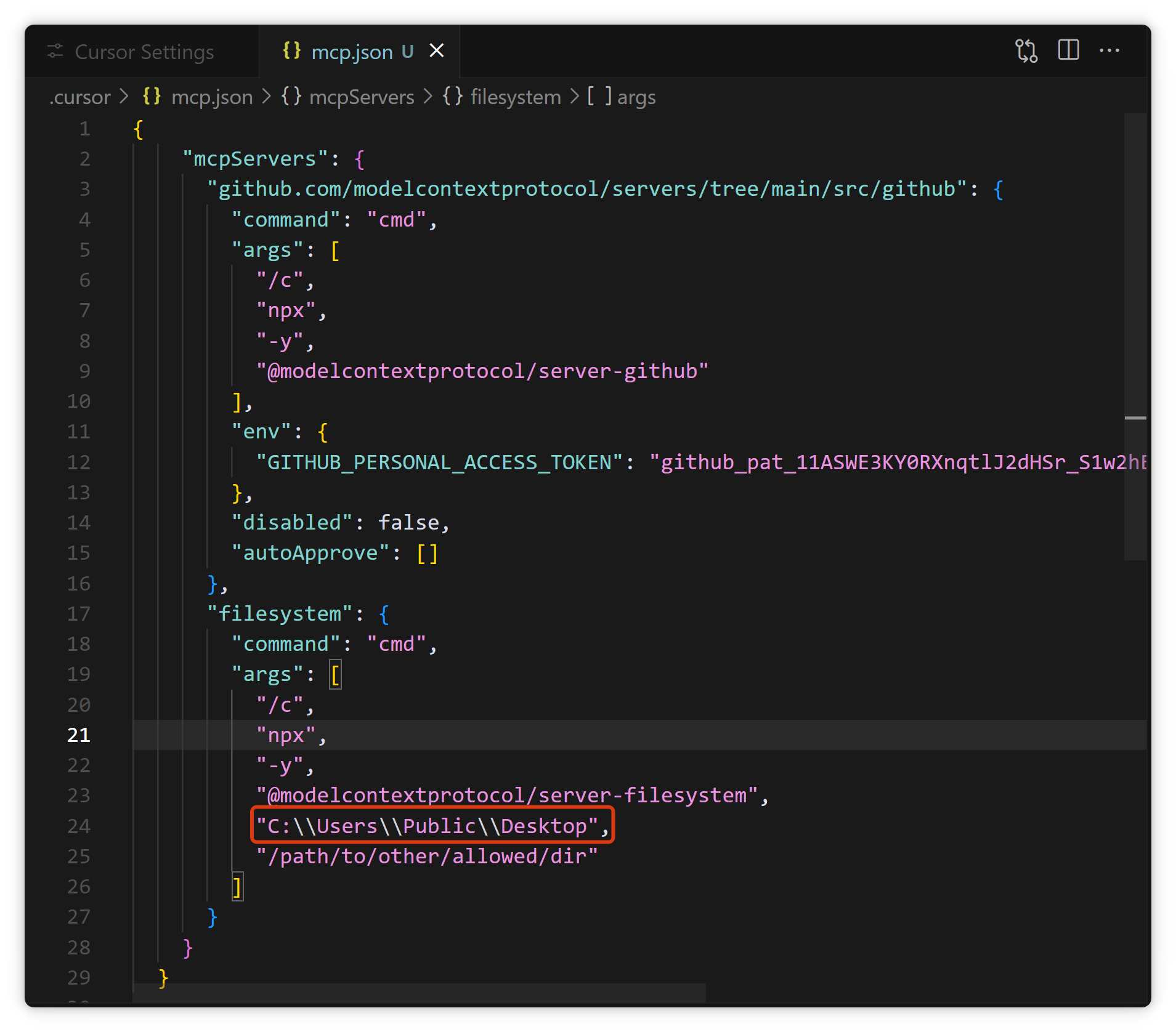 这样,无论是在 Cursor 还是 Cline,file system 这个 MCP Server 都可以顺利使用,两个工具之间的配置是可以互通的。