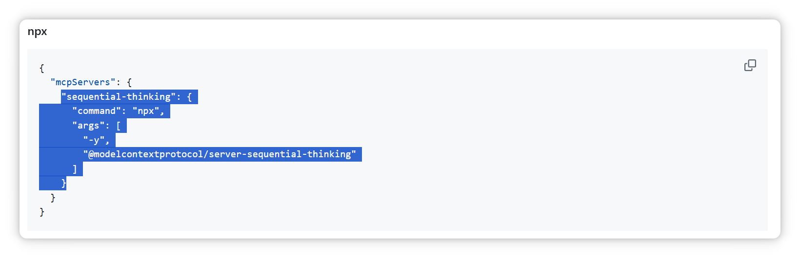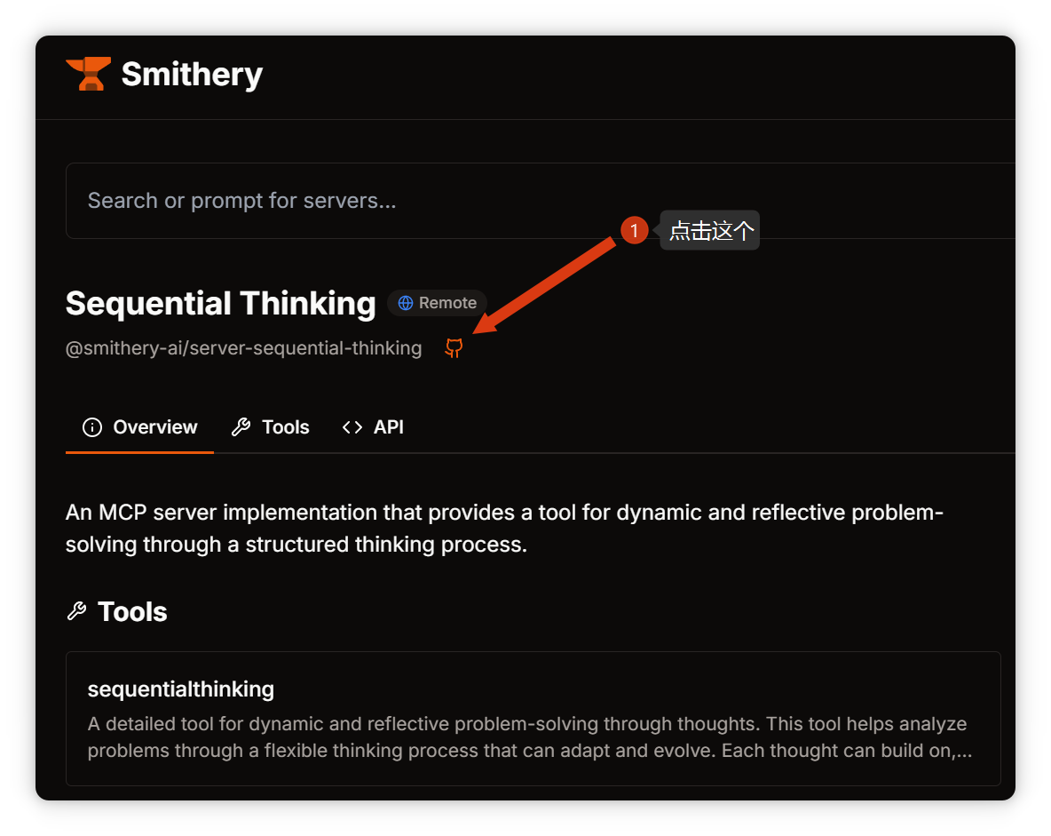 下面我以 Smithery.ai 中的一个名为 Sequential Thinking 的 MCP Server 为例: