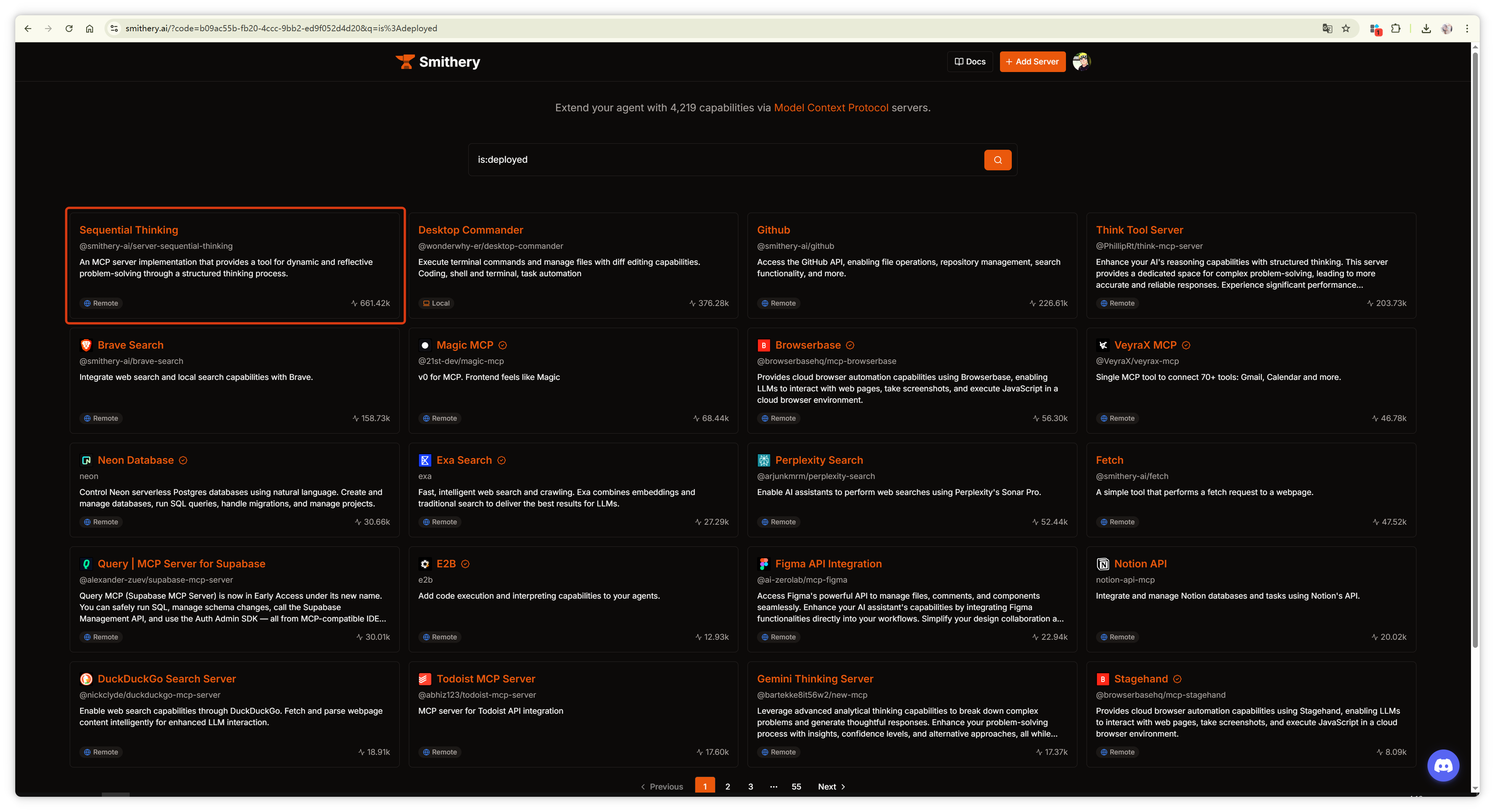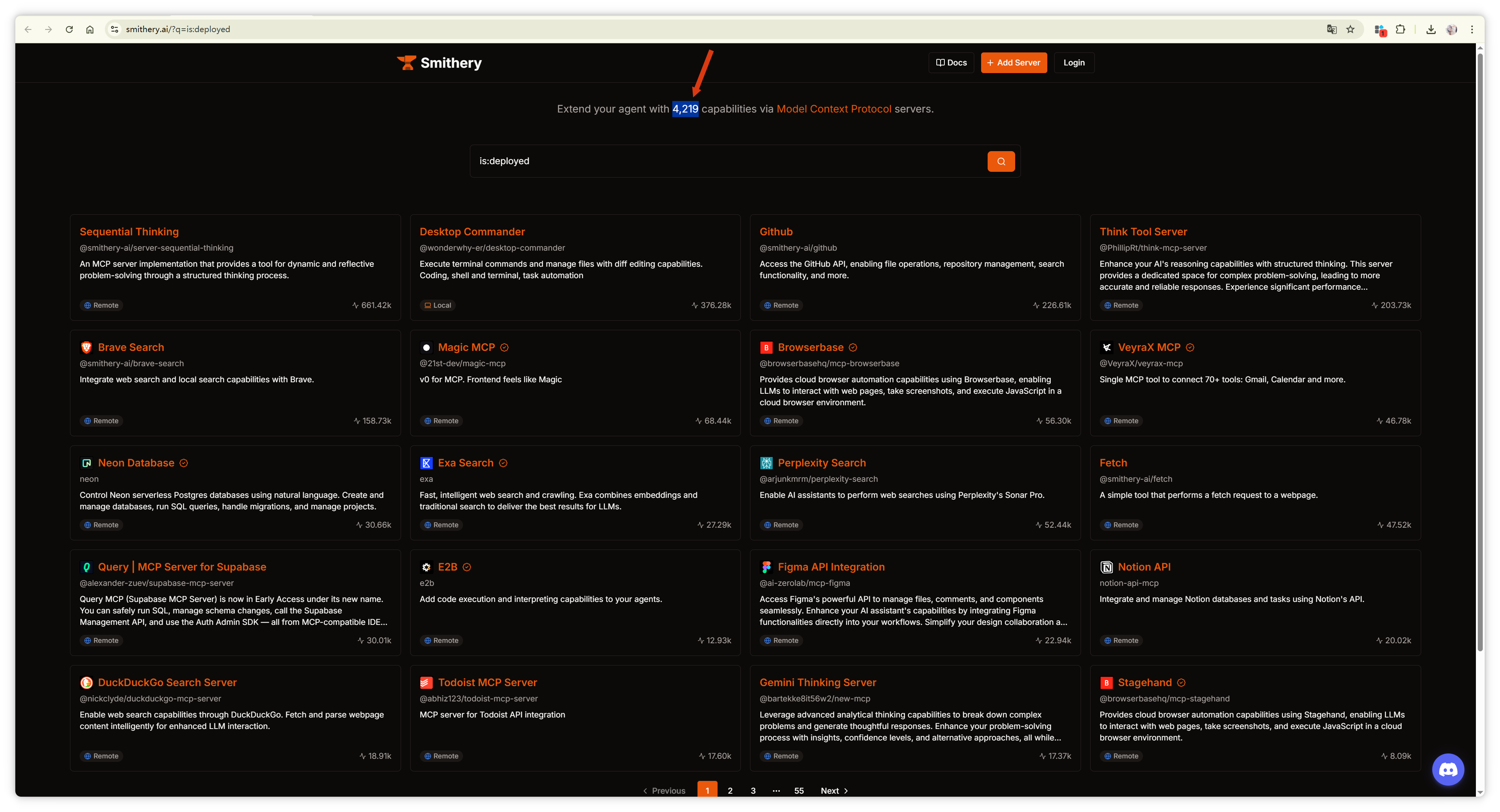 Smithery.ai 是一个 MCP 工具的聚合网站,目前已收录超过 4,219 种 MCP Server:
