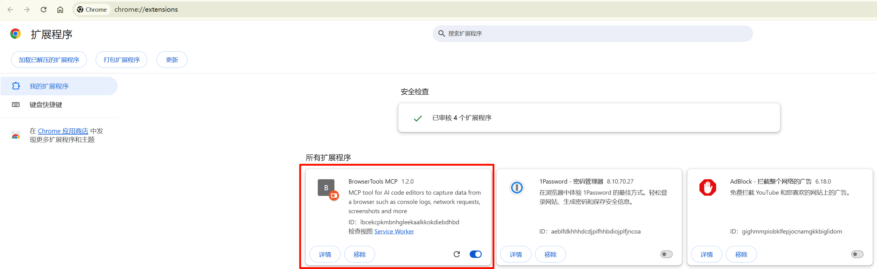 这个 MCP 工具可以让 AI 直接读取浏览器中的内容。要使用它,我们需要先安装一个 Chrome 插件: