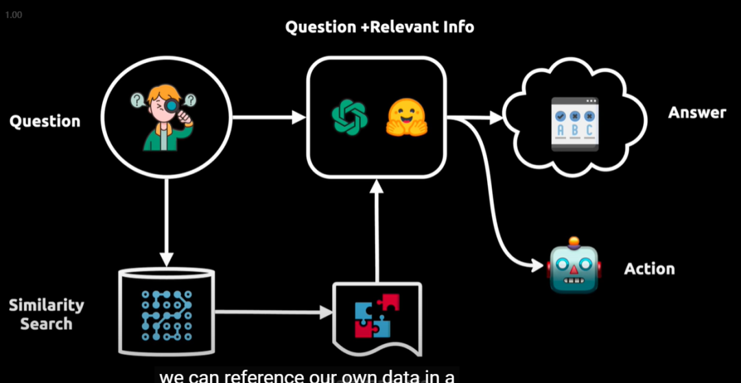 提问:用户提出问题。向语言模型查询:问题被转换成向量表示,用于在向量数据库中进行相似性搜索。获取相关信息:从向量数据库中提取相关信息块,并将其输入给语言模型。生成答案或执行操作:语言模型现在拥有了初始问题和相关信息,能够提供答案或执行操作。