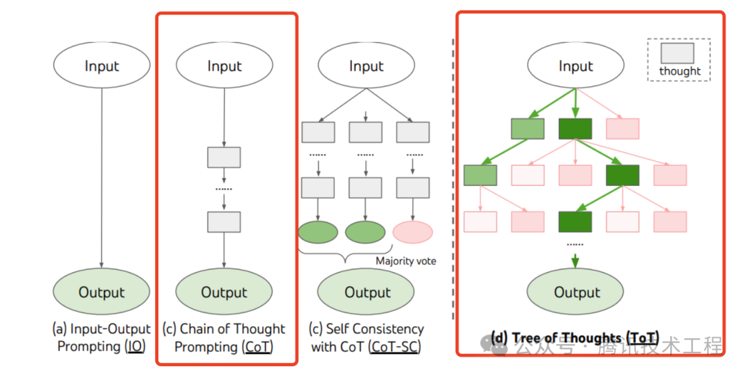 思维链已经是一种比较标准的提示技术,能显著提升 LLM 完成复杂任务的效果。当我们对 LLM 这样要求「think step by step」,会发现 LLM 会把问题分解成多个步骤,一步一步思考和解决,能使得输出的结果更加准确。这是一种线性的思维方式。