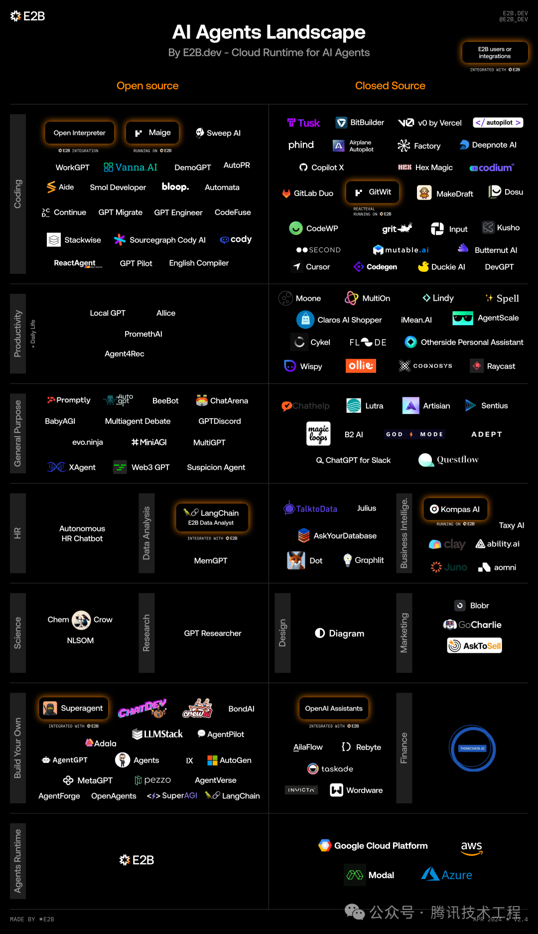 根据 awesome-ai-agents 的整理,无论是开源的还是闭源的,智能体应用框架在各个领域,比如自定义智能体、编码、研究、数据分析、多智能体等等,都有比较有代表性的产品可供选择。