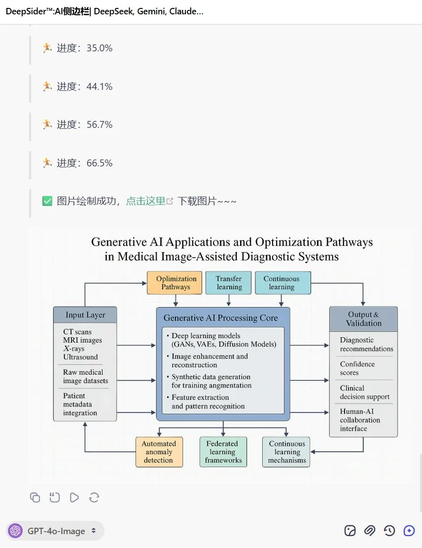 接着,再把润色后的提示词丢给GPT-4o-image模型,很快就可以得到一张完整的科研配图了。