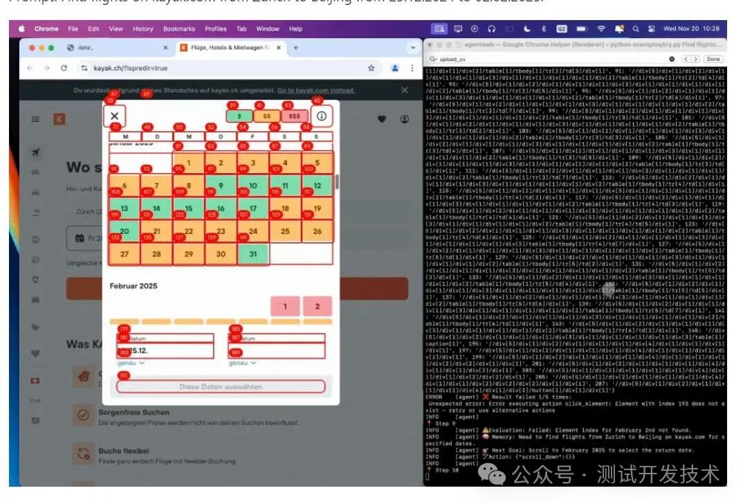以下是一个简单的示例,展示了如何使用Browser Use来自动化查找从巴厘岛到阿曼的单程航班,并在Google Flights上返回最便宜的选项。