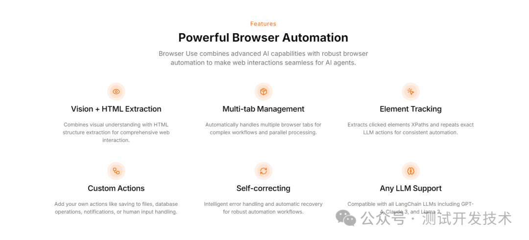 Browser Use能够自动解析网页内容,提取出文本、图片等视觉元素以及HTML结构,为AI代理提供丰富的输入信息。