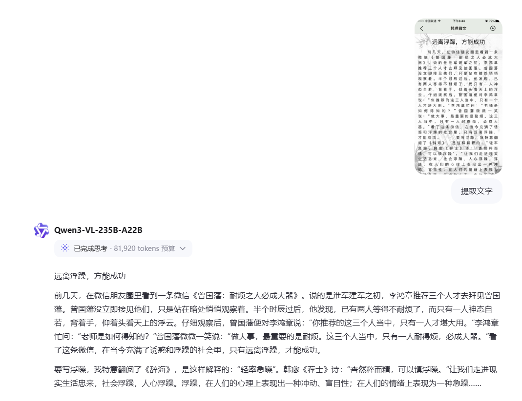 OCR识别算是一个多模态模型的基准测试了,来让我测一下Qwen3-VL的效果。