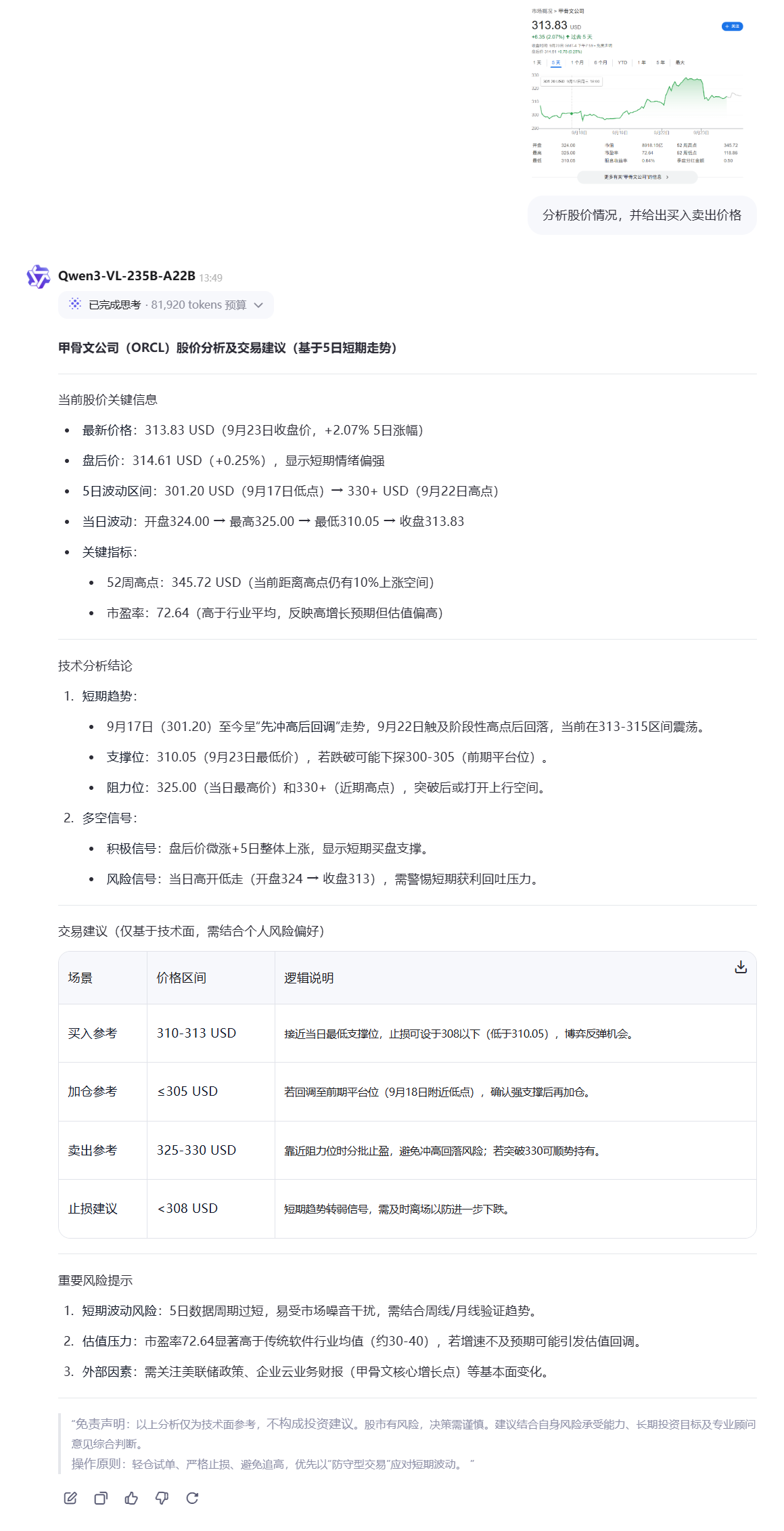 再来看看Qwen3-VL对于股价分析是否有识别