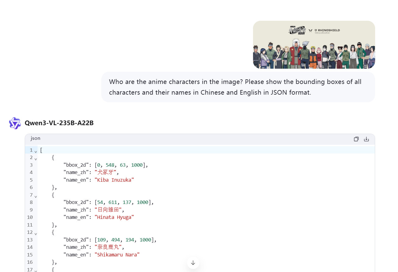 让Qwen3-VL模型针对一幅图的所有动漫人物进行识别