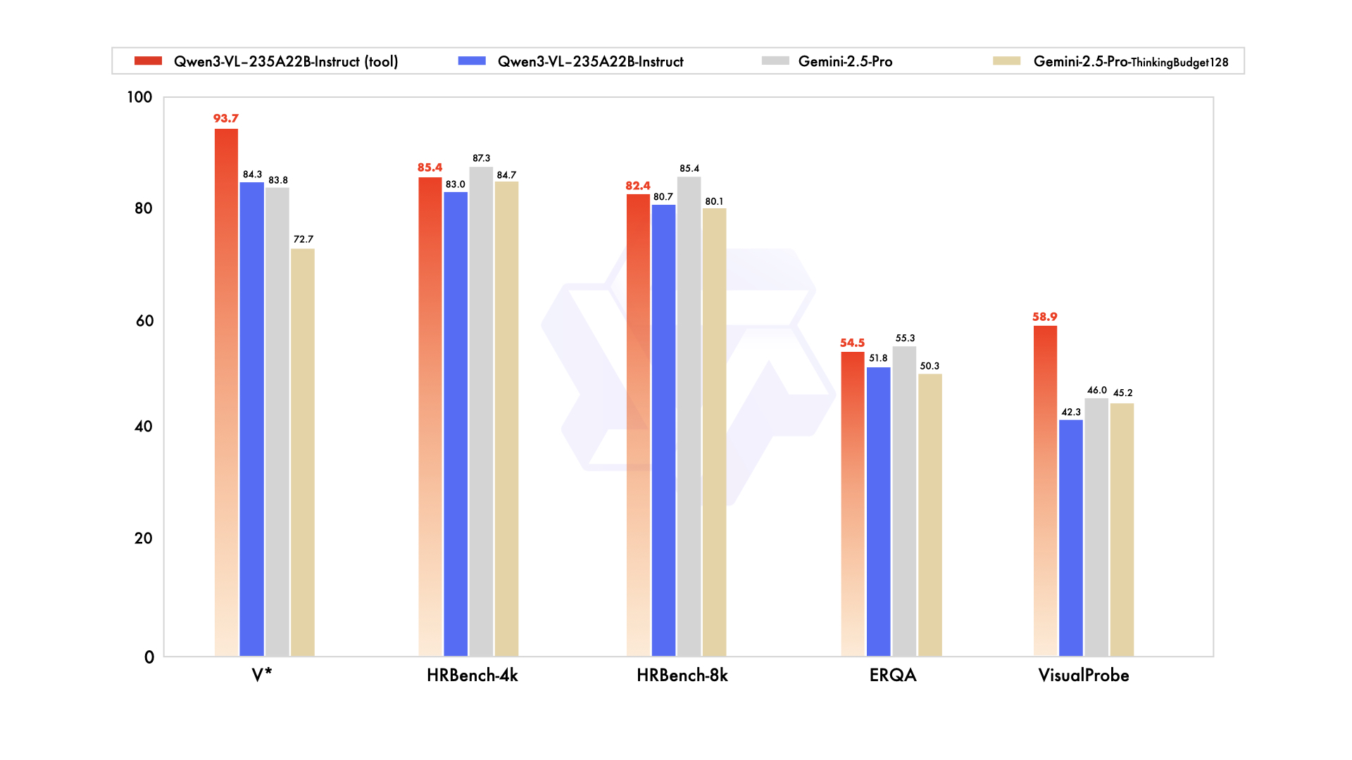 此外,Qwen3-VL-235B-A22B-Instruct 模型具备图像推理功能支持能力。从实验数据表明,该模型在全部四项基准测试中均呈现显著且稳定的性能提升,这一结果有力证实了"图像分析协同工具调用"技术路径对于提升视觉感知能力的核心价值。
