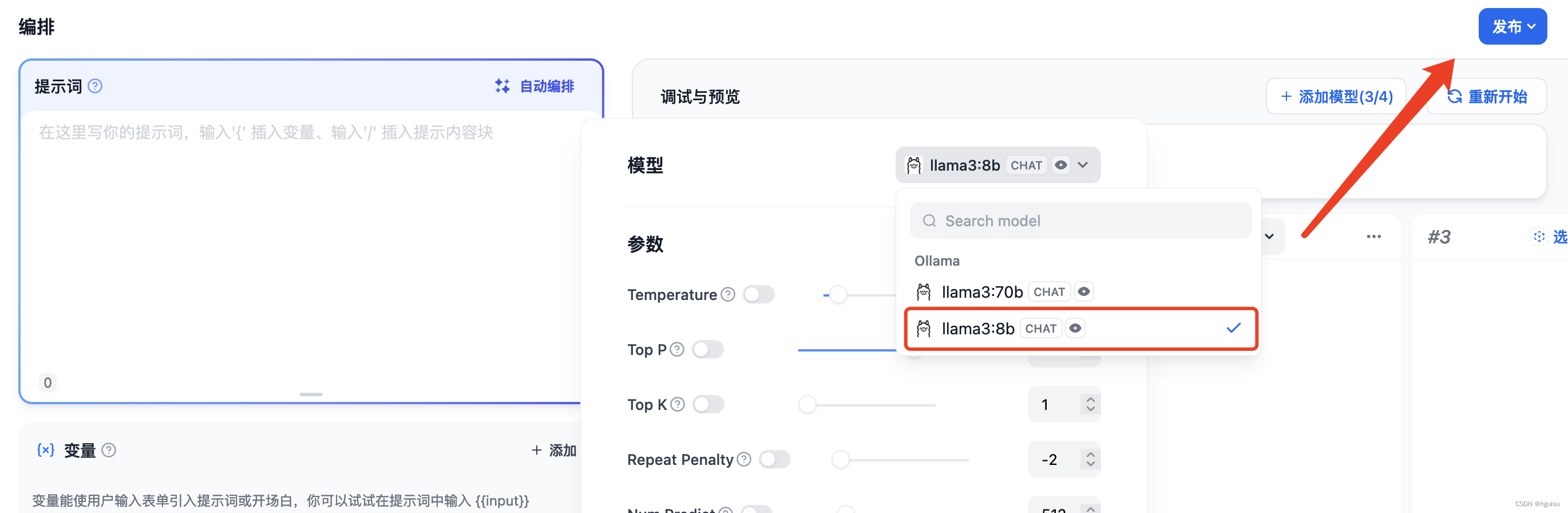 模型名称固定为:llama3:70b和llama3:8b