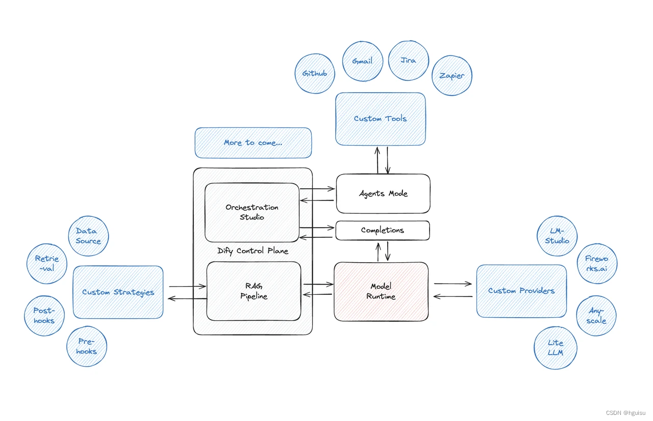 通过这些技术架构的组成部分,Dify.AI 为开发者提供了一个全面、灵活且易于使用的平台,以支持生成式 AI 应用的快速开发和部署。