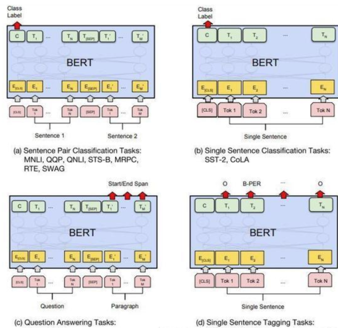 经过中间层Transformer的处理后, BERT的最后一层根据任务的不同需求而做不同的调整