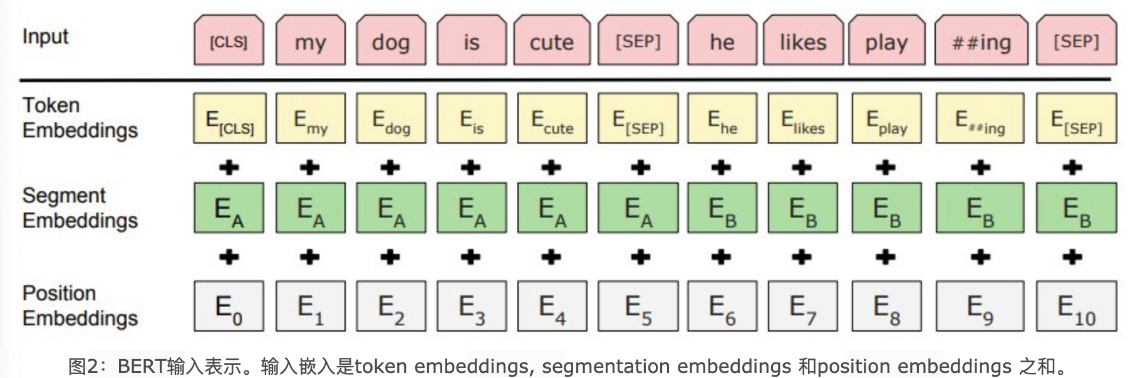 BERT 的输入表示是通过将上述三种 Embedding 相加得到的: