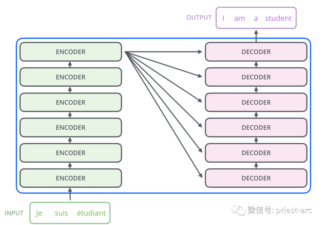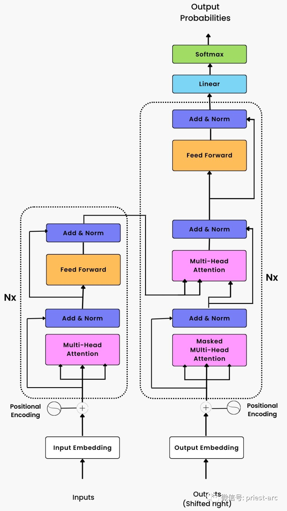 基于如上的 Transformer 深度学习模型的整体架构参考模型图,我们可以看到:它由两个主要组件组成: