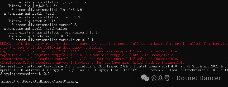 我在安装期间报错了,看提示内容,是依赖的numpy包环境版本冲突。