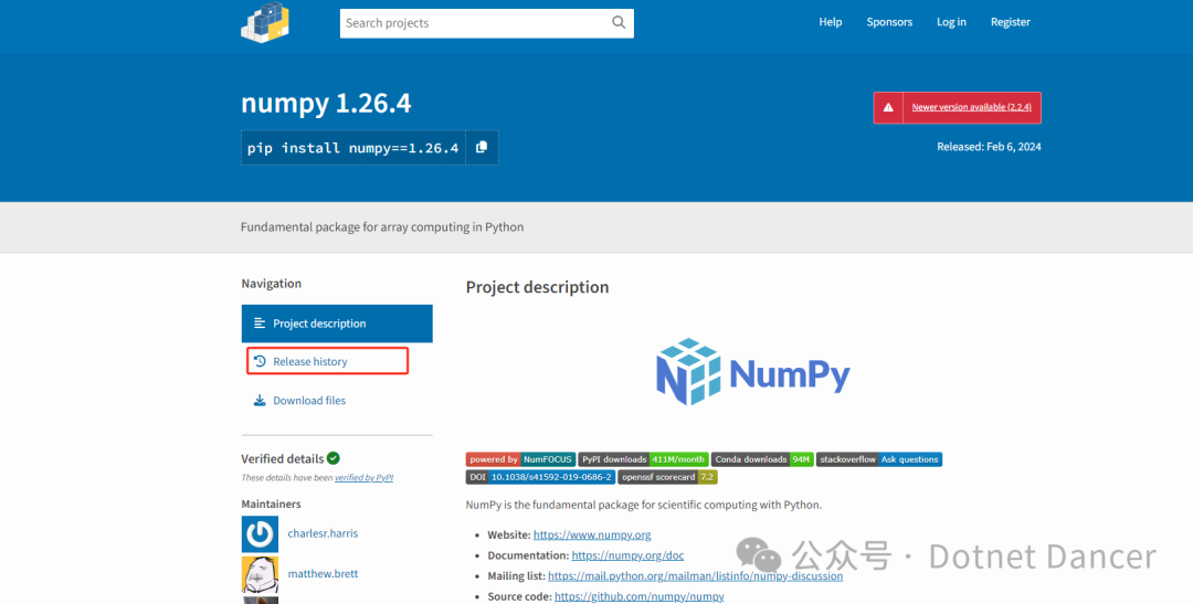 上numpy库进行查看numpy的所有版本,找到一个不冲突进行代替,找到1.2x版本最新的是1.26.4,那咱们就用这个版本来代替吧。