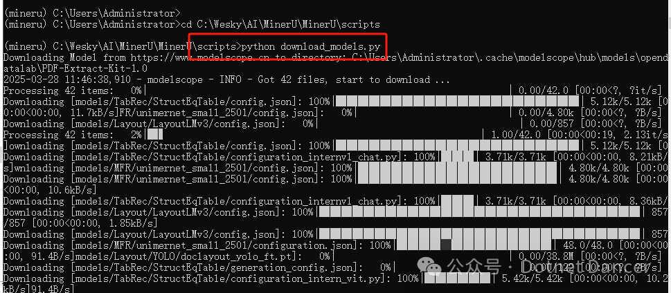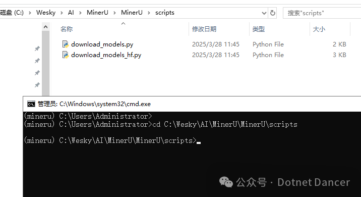 这conda环境下,目录定位到minerU项目的脚本文件夹路径下: