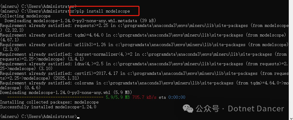 安装成功以后,还要继续安装 modelscope环境: