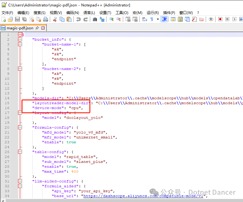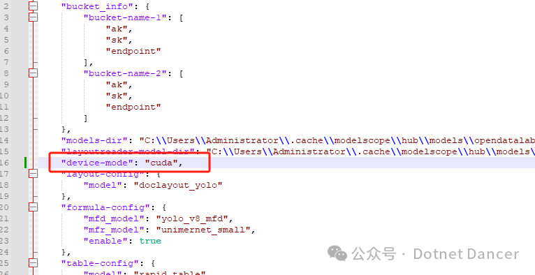 在magic-pdf的配置文件内,找到device-mode属性,把默认大模式是cpu改为cuda