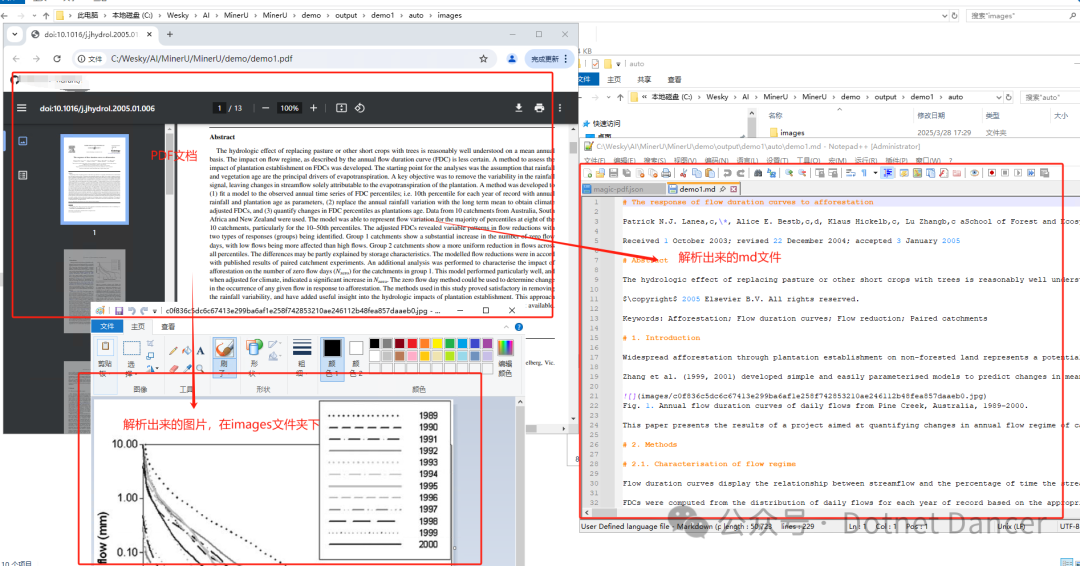 经过短暂的运行以后,跑完以后在指定输出的output文件夹下面,可以看到PDF文件被解析成功了,输出量md文件类型,并且里面的图片也被对应处理,放到了images文件夹下。