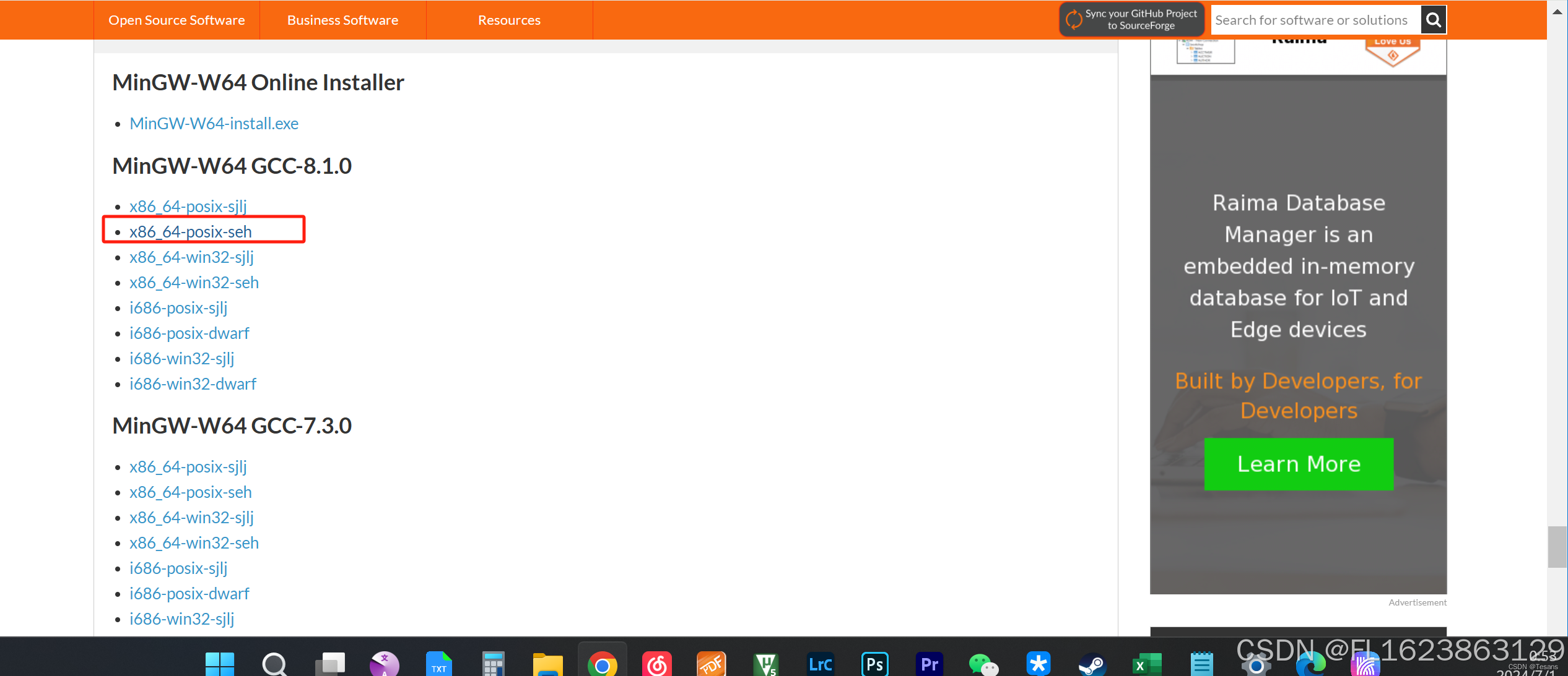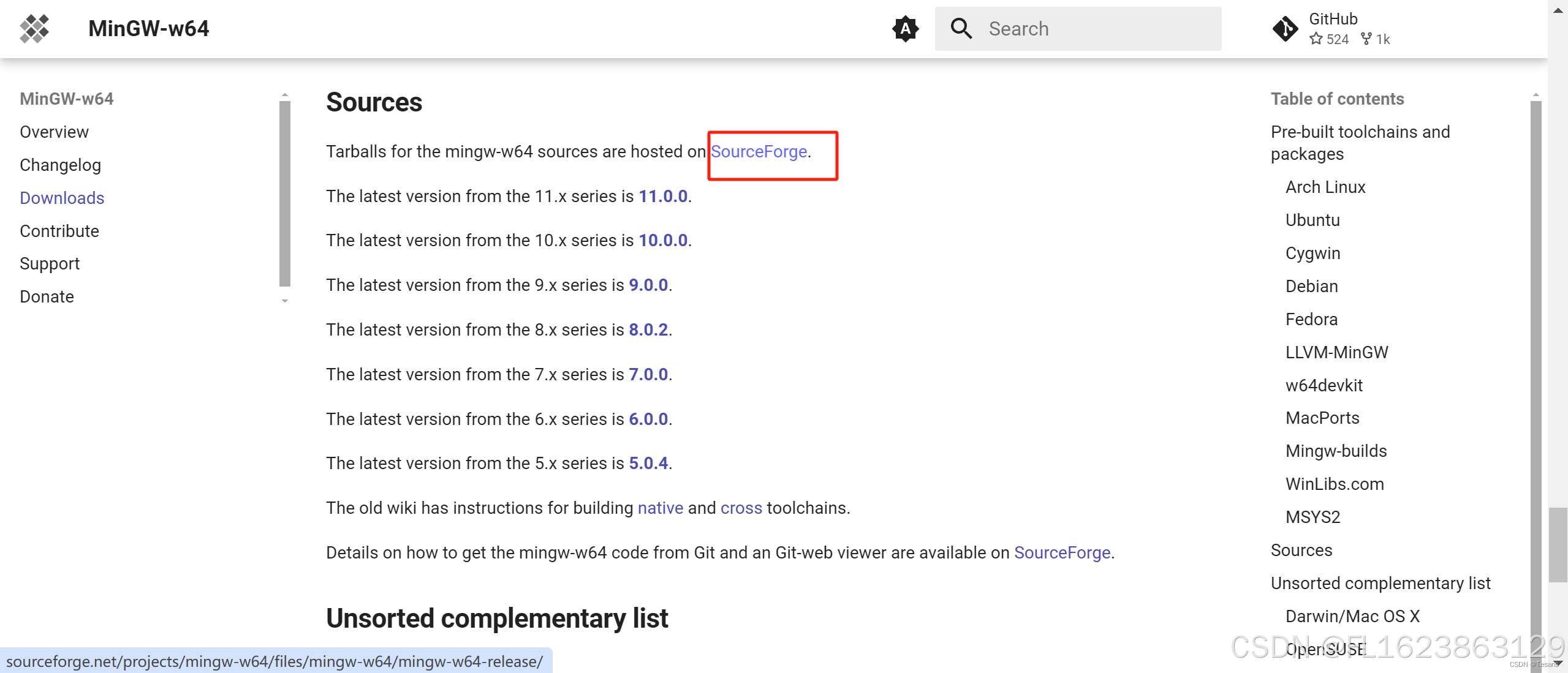 首先进去官方官网地址:https://www.mingw-w64.org,注意如果下载不了或者下载慢可以使用下面提供国内下载地址,可以满速下载。