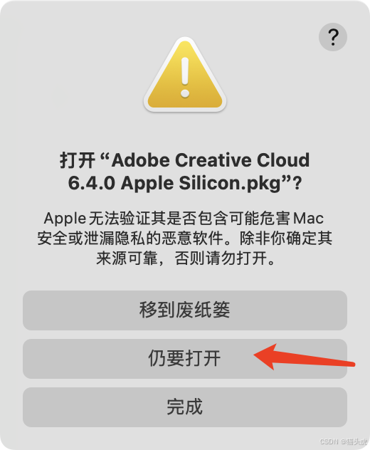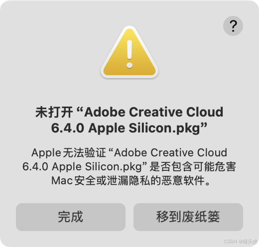 “无法打开‘XXX.pkg’,因为无法验证其是否包含可能危害Mac安全或泄漏隐私的恶意软件。”
