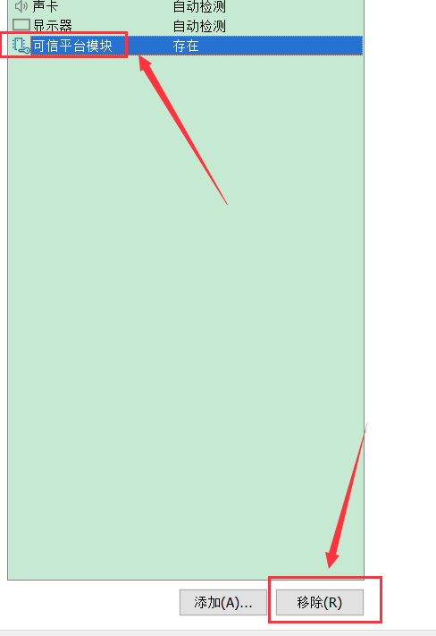 点击可信平台模块,再点击移除即可。