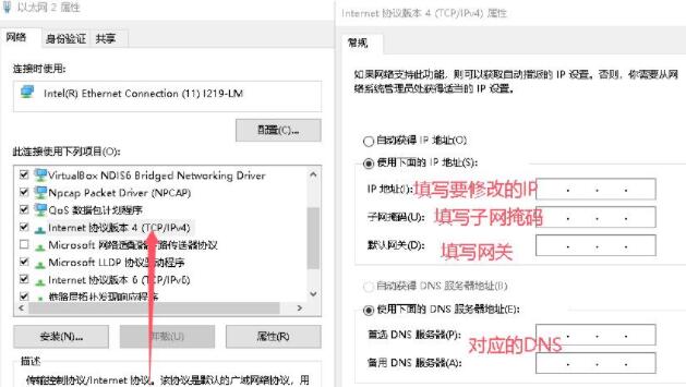 点击以太网的属性按钮。双击Internet协议版本4(TCP/IPv4)。选择使用下面的IP地址(S)。将对应的内容填写完成后点击确定即可。