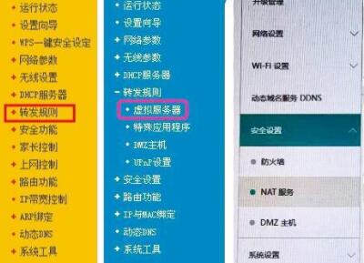通常在路由器后台虚拟服务器,或端口映射,或应用管理,或高级功能里面,不同型号路由名称有所不同,作用功能是一样的。