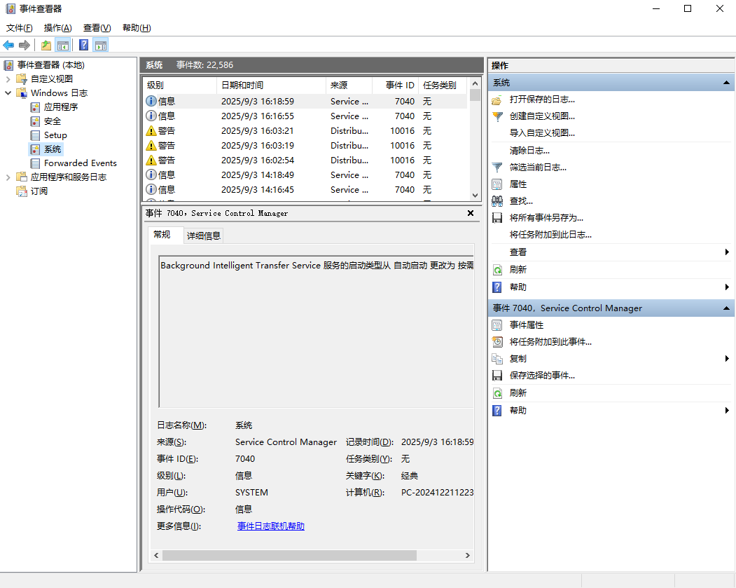 事件ID 7036:服务启动/停止记录