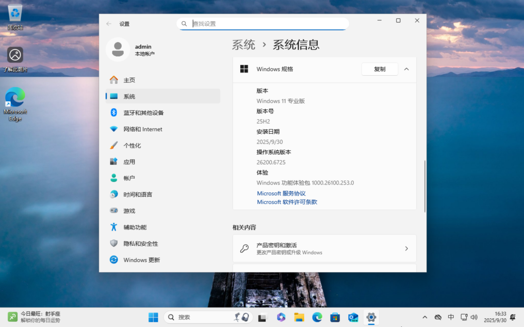 安装后版本号 26200.6725 (25H2)