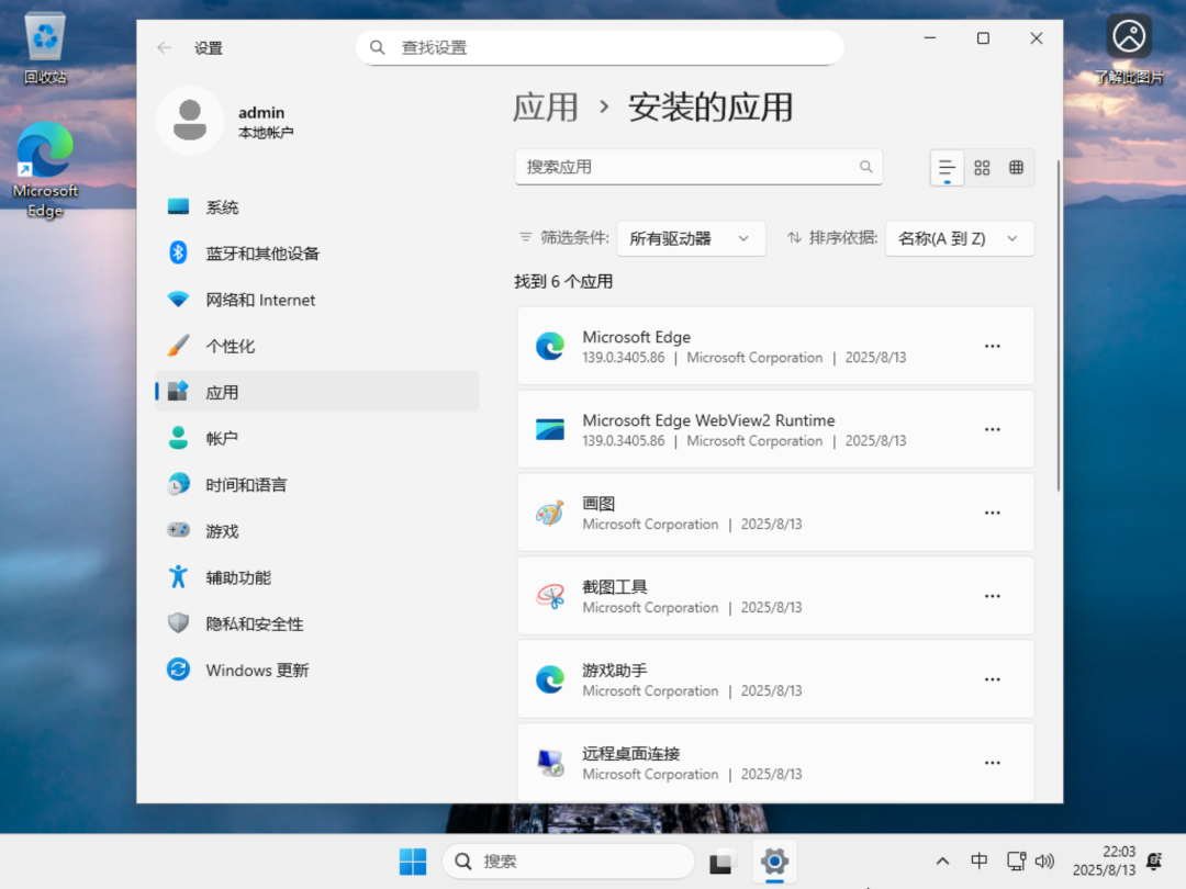 预装了 Edge 浏览器,但同样没有预装微软应用商店