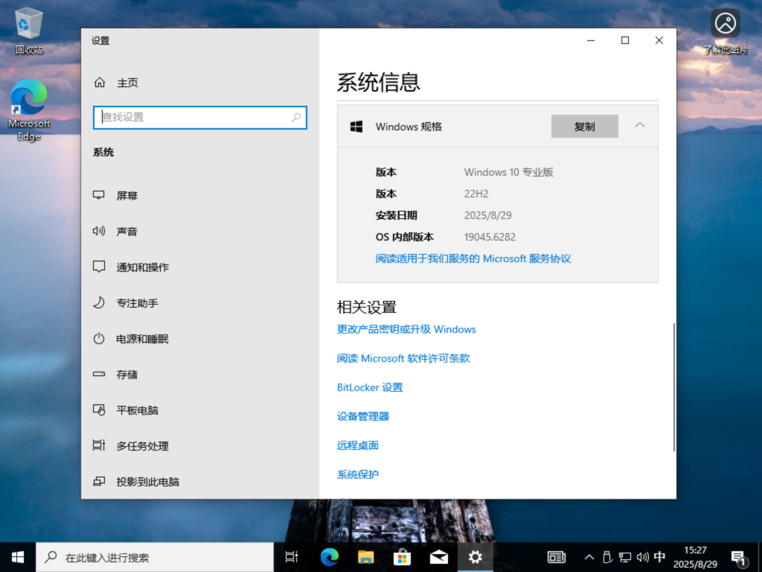 安装后系统信息如图,版本号 19045.6282