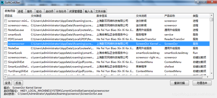 未知流氓软件只要有广告弹窗,用软件目录的adwview定位弹窗,之后点右下角的softcnkiller按钮可以扫描弹窗关联项。