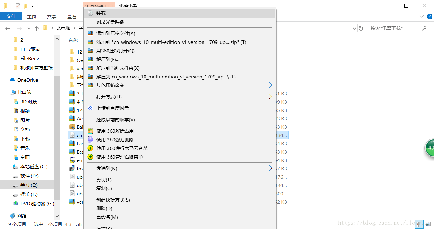 首先在Win10 ISO文件上点击右键,就是你下载的系统,选择“装载”。如图