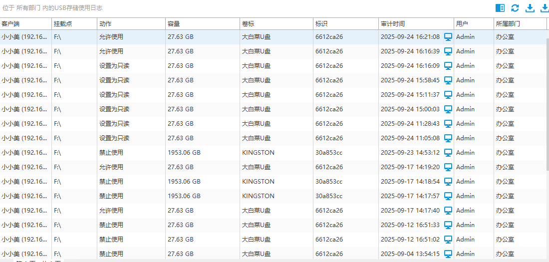 系统会记录U盘在哪台电脑上插入过,同时还能监控U盘的访问权限设置情况。这些数据以详细的日志形式保存,管理员可以通过直观的界面查看历史记录。