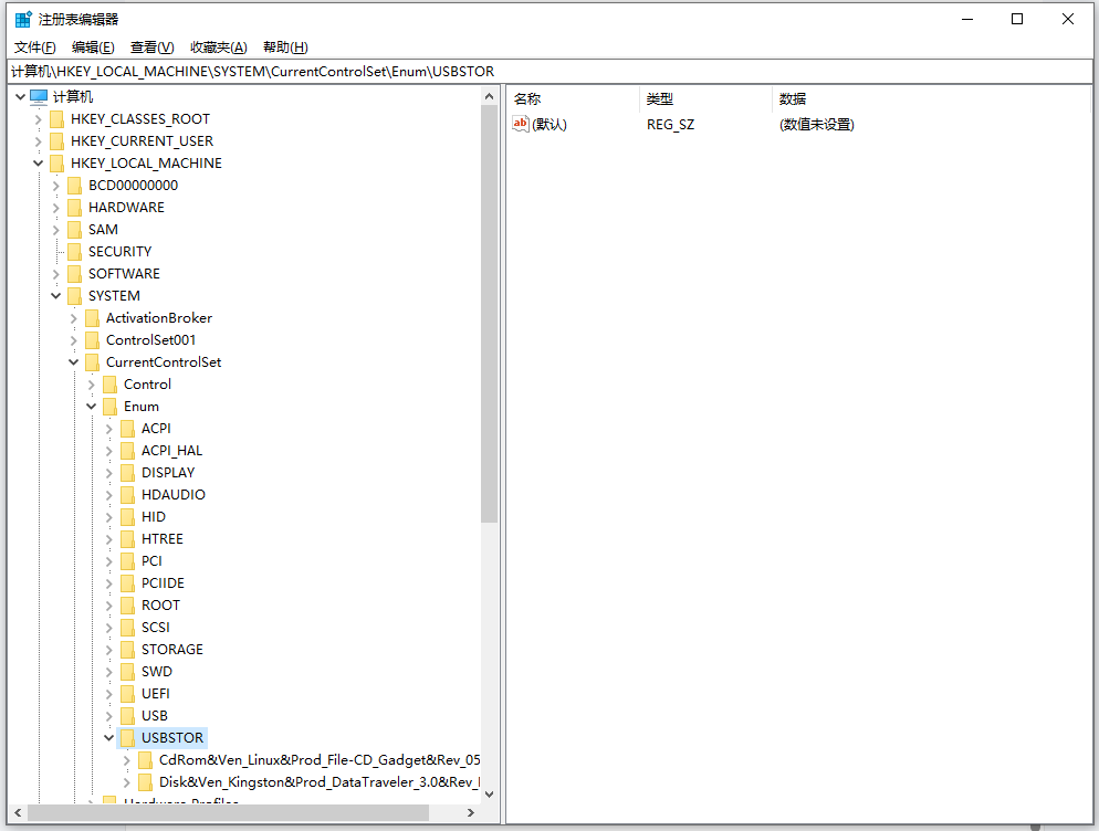 HKEY_LOCAL_MACHINE\SYSTEM\CurrentControlSet\Enum\USBSTOR
