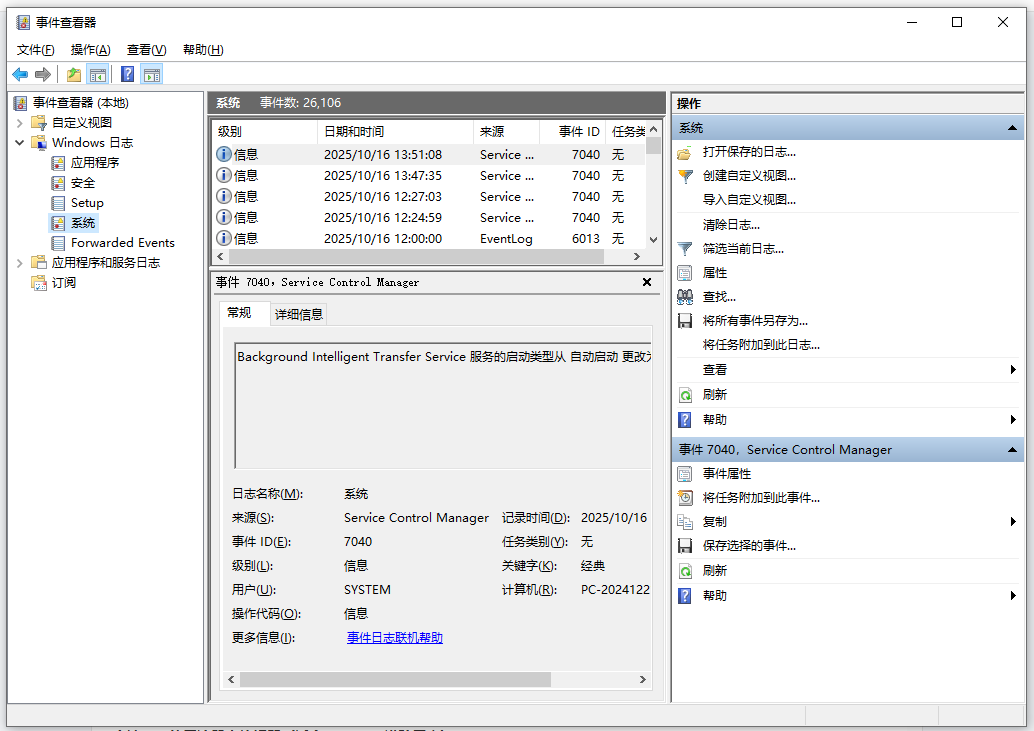 Windows日志 → 系统