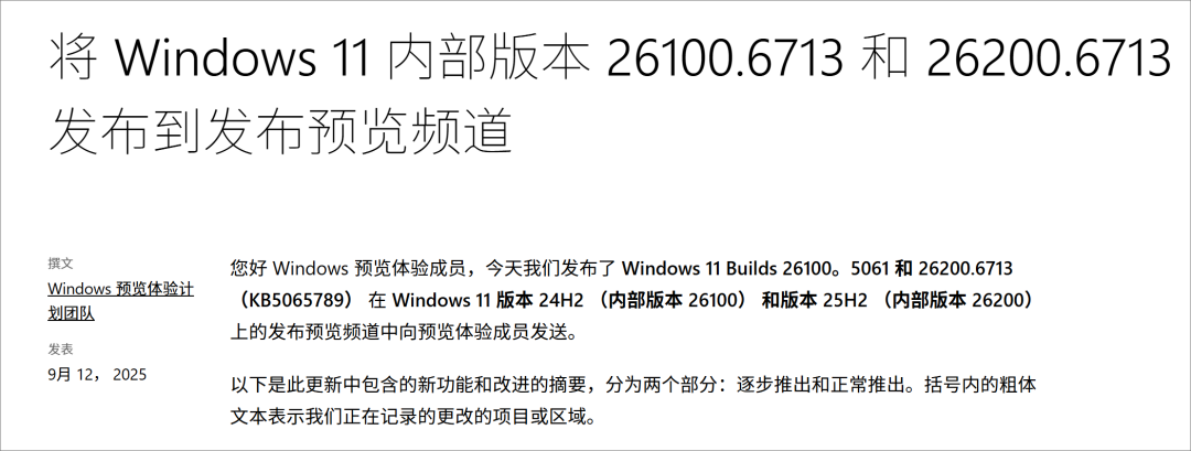 ? 25H2是Win11的2025年度更新版本,预计在今年秋季发布。目前已向RP预览发布渠道推送更新,相当于准正式版了。目前25H2准正式版绝大分部功能体验,与24H2版本一致,是24H2的小幅度更新改进版本。安装准正式版25H2后,后续可以正常接收25H2正式版更新。