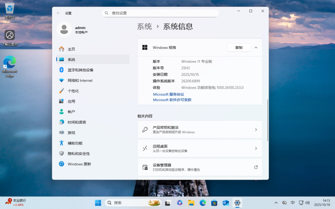 安装后系统版本号 26200.6899 (25H2)