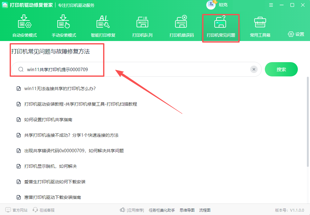 还可以在软件的【打印机常见问题】模块中输入错误码、就能搜索修复方法、小白也能轻松操作!