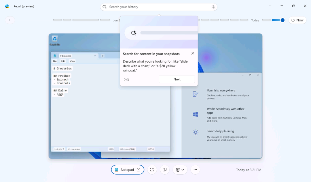 25H2新功能图示:Recall 引入新的个性化主页(Copilot+ PC专属)