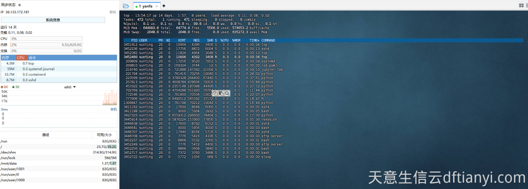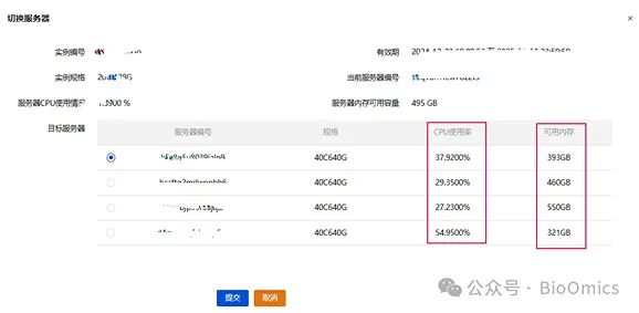 在跑大任务之前,用户端可以查看自己的实例所在的服务器是否有足够的内存,在天意云官网可以看到不同服务器情况和内存配置,用户可以自行切换,选择时段内最优配置跑任务。