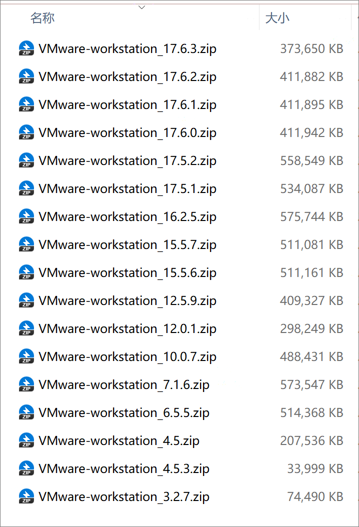 此处除了提供 VMware Workstation 最新版本安装包外,还搜集了多个历史旧版本,包含VMware17/16/15/12/10/7/6/5/4/3等,可按需选择下载